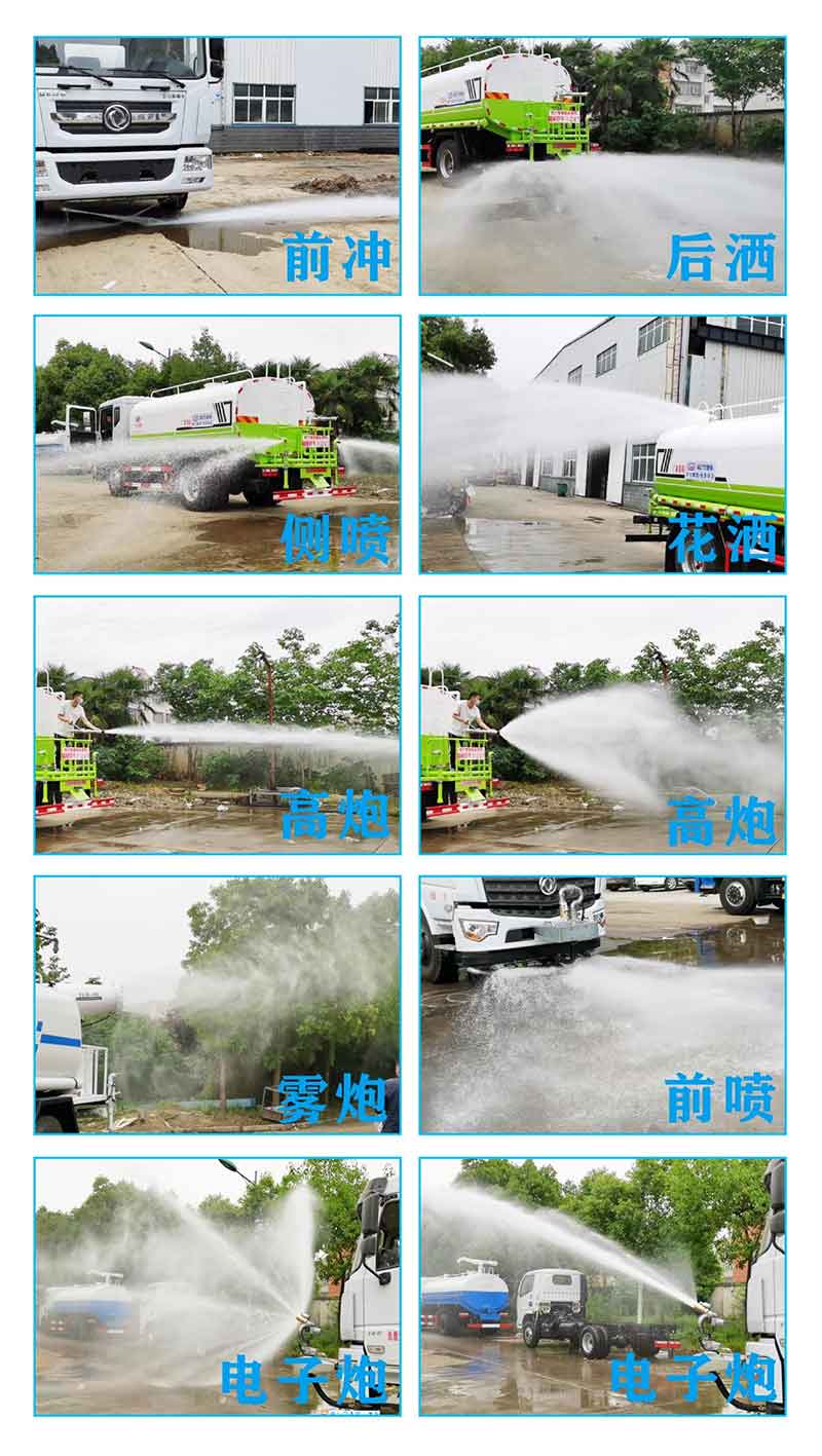東風(fēng)凱普特5方純電動灑水車采用一線品牌自吸式離心泵,效率高,揚程大,罐體選用優(yōu)質(zhì)鋼板,水罐內(nèi)壁出渣后噴涂防銹漆,以防內(nèi)壁銹蝕,配前沖、后灑、水炮,配置氣孔球閥,在駕駛室內(nèi)集中控制,也可單獨開啟,操作方便靈活,后工作平臺采用輕質(zhì)的玻璃鋼格柵,可防水、防滑、防腐,前沖14米寬,后灑8米寬,后工作平臺灑水高炮≥30米。